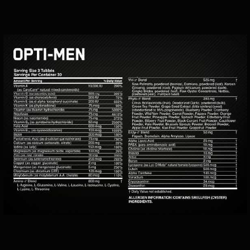 Un físico impresionante se construye sobre una base de salud sólida. Opti-Men de Optimum Nutrition es un complejo multivitamínico de alta potencia diseñado específicamente para cubrir las necesidades del hombre activo. Contiene mezclas de aminoácidos, extractos herbales, y un espectro completo de vitaminas y minerales para apoyar la energía, el rendimiento y la vitalidad.